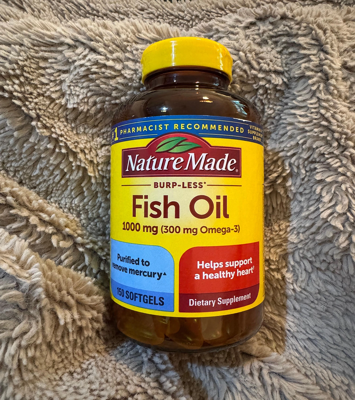 Nature Made Burp Less Fish Oil Omega 3 Supplements, 1000mg Softgels, Omega 3 Fish Oil Supplements for Healthy Heart Support, 150 Softgels, 75 Day Supply(150 Count (Pack of 1))