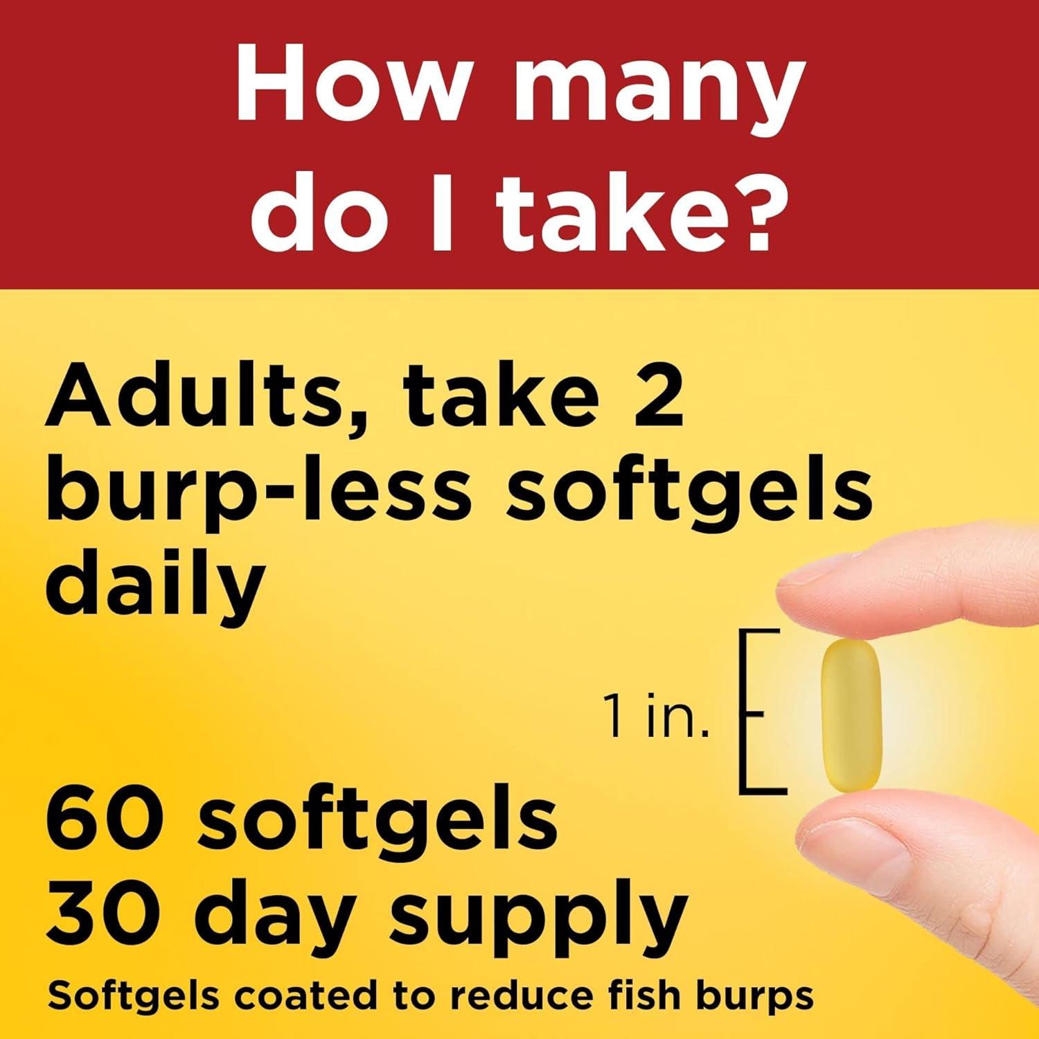 Nature Made Burp Less Fish Oil Omega 3 Supplements, 1200 mg Softgels, Omega 3 Fish Oil for Healthy Heart Support, 300 Softgels, 150 Day Supply(60 Count (Pack of 1))
