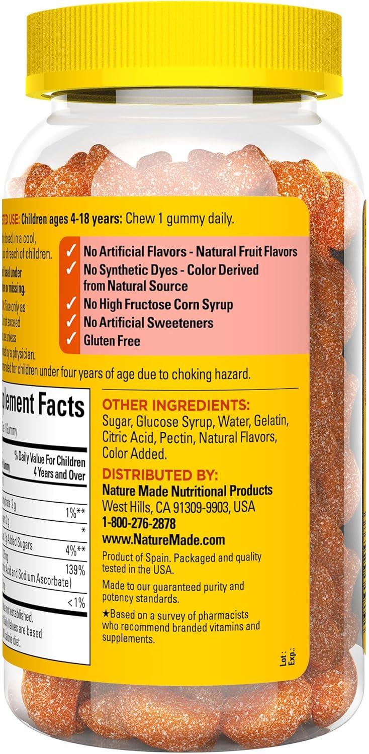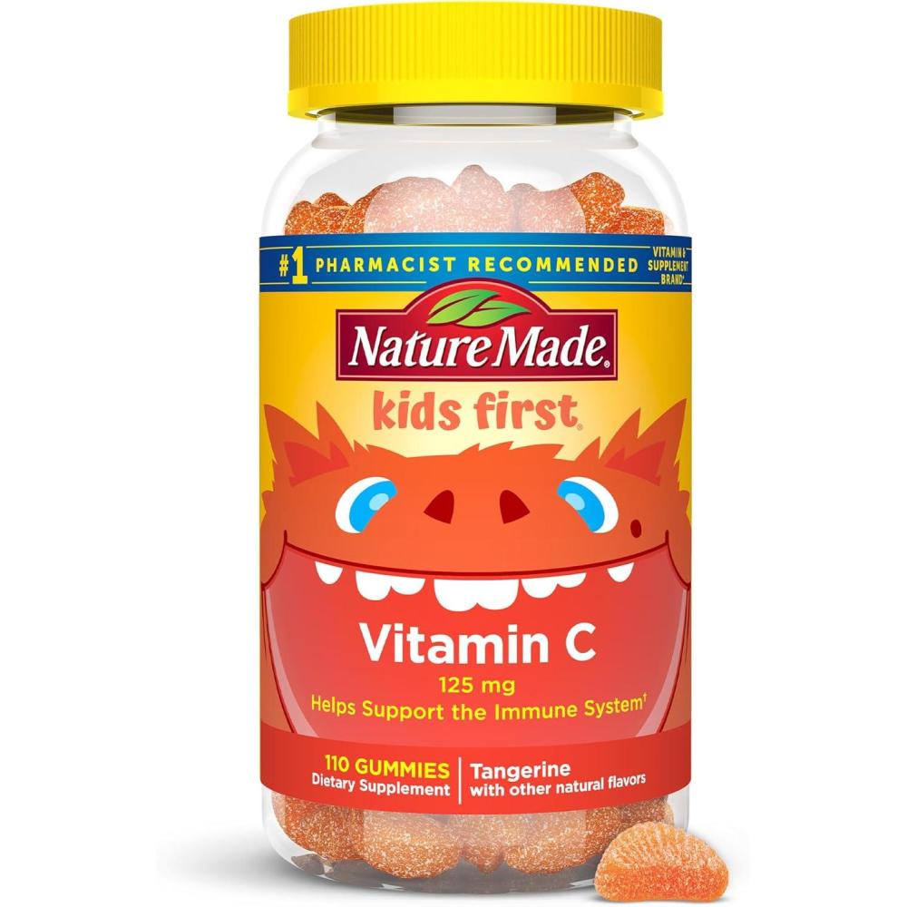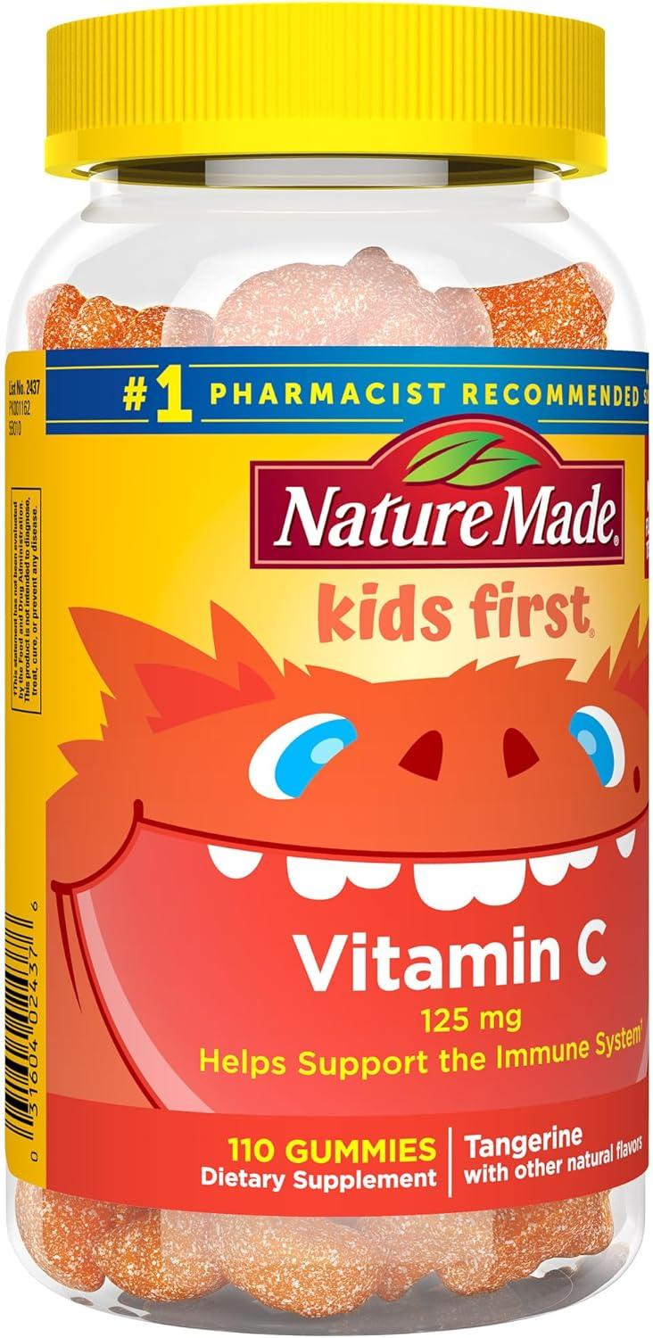 Nature Made Kids First Vitamin C Gummies for Kids, Dietary Supplement for Immune Support, 110 Gummies, 110 Day Supply(No Artificial Sweeteners)