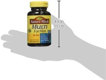 Nature Made Multivitamin For Him Tablets are specially formulated with ingredients to support men’s muscle health and bone health, immune health, and energy metabolism(1). Sourced from high-quality ingredients, this gluten free multivitamin with no iron has no color added and no artificial flavors. This Nature Made Multi for Him is a dietary supplement packed with 22 key nutrients for daily nutritional support, including Vitamin A, Vitamin C, Vitamin D3, and Vitamin E. Mens multivitamin cognitive support with ingredients that help support healthy cognitive function. These mens multivitamins are perfect for men who want to fill potential nutrient gaps in their diet. Adults, take one of these Nature Made men's multivitamin tablets daily with water and a meal. Nature Made supplements are quality you can trust. Explore vitamins and supplements from Nature Made, including men's daily multivitamin and vitamins for men. USP has tested and verified ingredients, potency and manufacturing process. USP sets official standards for dietary supplements. Visit the USP verified website for more information. (1)Helps convert food into cellular energy.