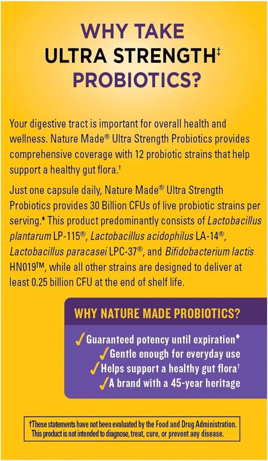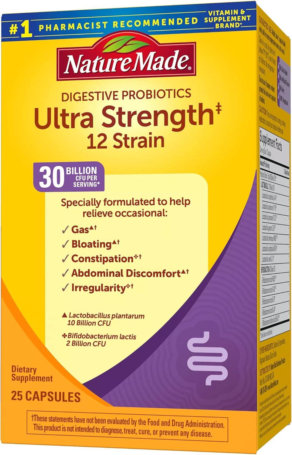Nature Made Extra Strength Digestive Probiotics for women Gummies (and men) are dietary supplements that help support a healthy digestive system, important for overall health and wellness. This daily probiotic for women and men has no synthetic dyes and no artificial flavors. These adult probiotics for gut health for women and men are formulated to provide at least 8 billion live cells per 2 gummies(1) to help support digestive health. These men and women probiotics gummies come in delicious raspberry and cherry flavors with other natural flavors. No refrigeration required, these probiotics are shelf stable and formulated to deliver 8 billion CFUs until the end of their shelf life(1). Adults, chew two Men's and Women's Probiotic gummies daily. Nature Made probiotic gummies for men and women are quality you can trust.This daily dietary supplement is a convenient chewable supplement enjoyed at home or on the go and fits perfectly into any supplement user’s wellness routine. (1)Formulated to provide at least 8 billion live cells per serving if continuously stored in a cool, dry place at or below 75°F (23°C) and consumed prior to expiration date. *Based on a survey of pharmacists who recommend branded vitamins and supplements.