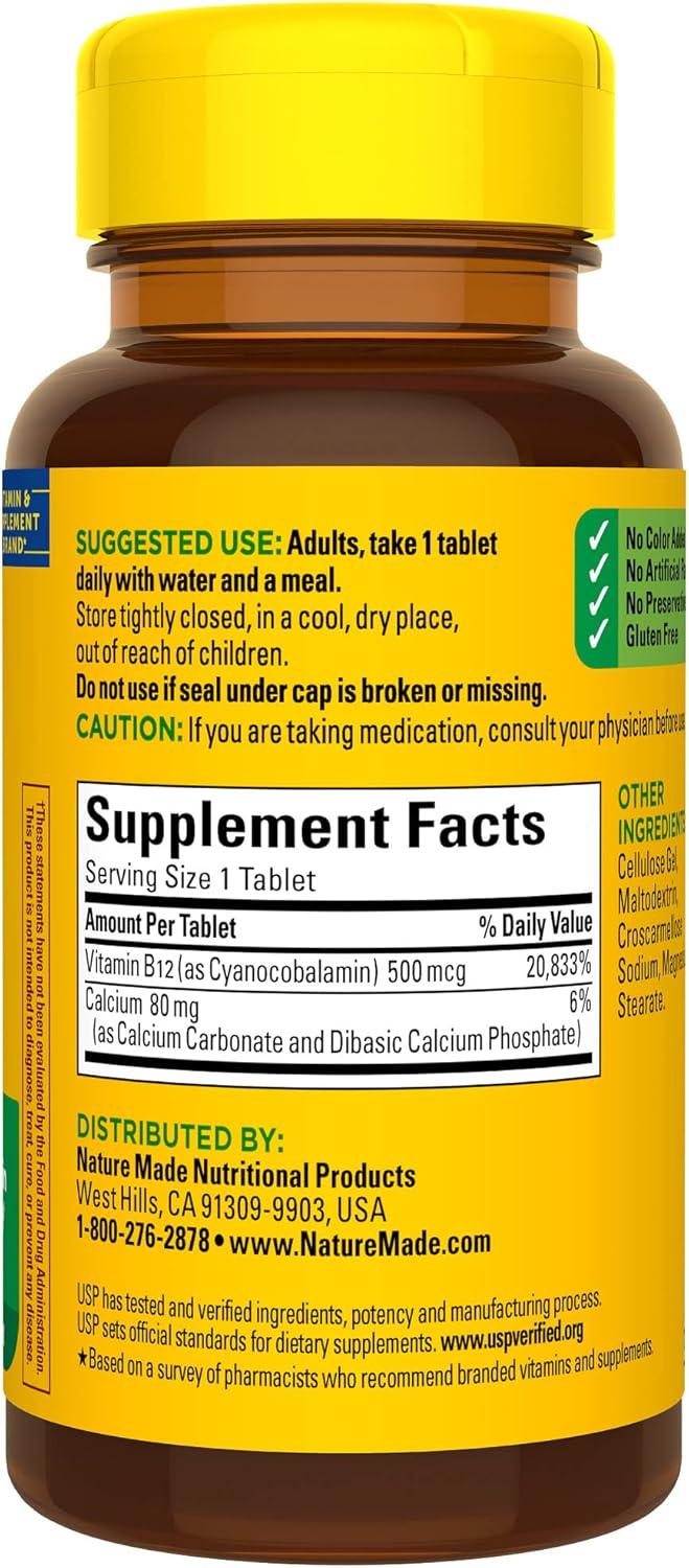 Nature Made Vitamin B12 500 mcg, Dietary Supplement for Energy Metabolism Support, B12 Vitamins 500 mcg, 200 Tablets, 200 Day Supply(100 Count (Pack of 1))