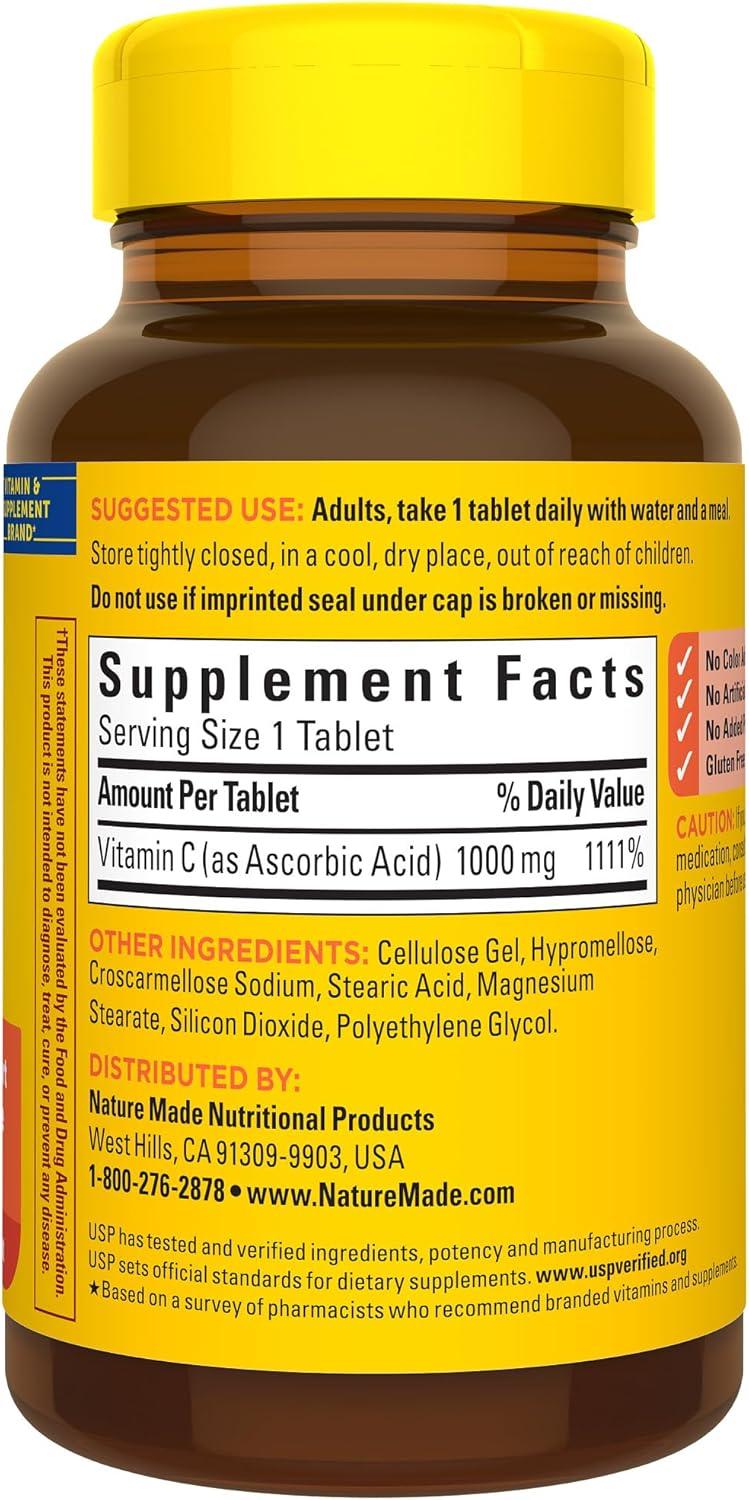 These Nature Made Vitamin C tablets 1000mg are Vitamin C supplements that help support immune health and provide antioxidant support