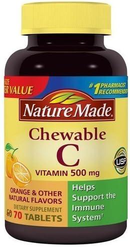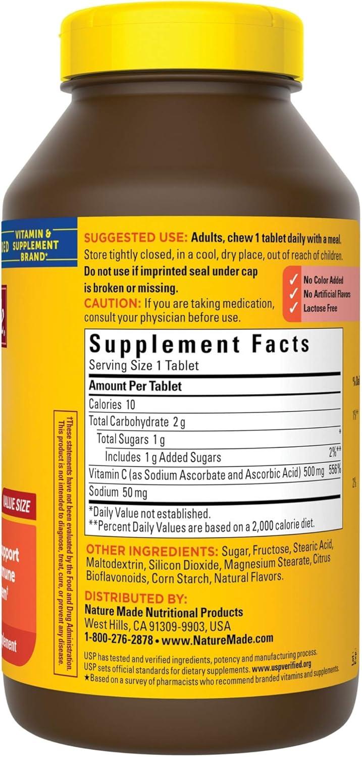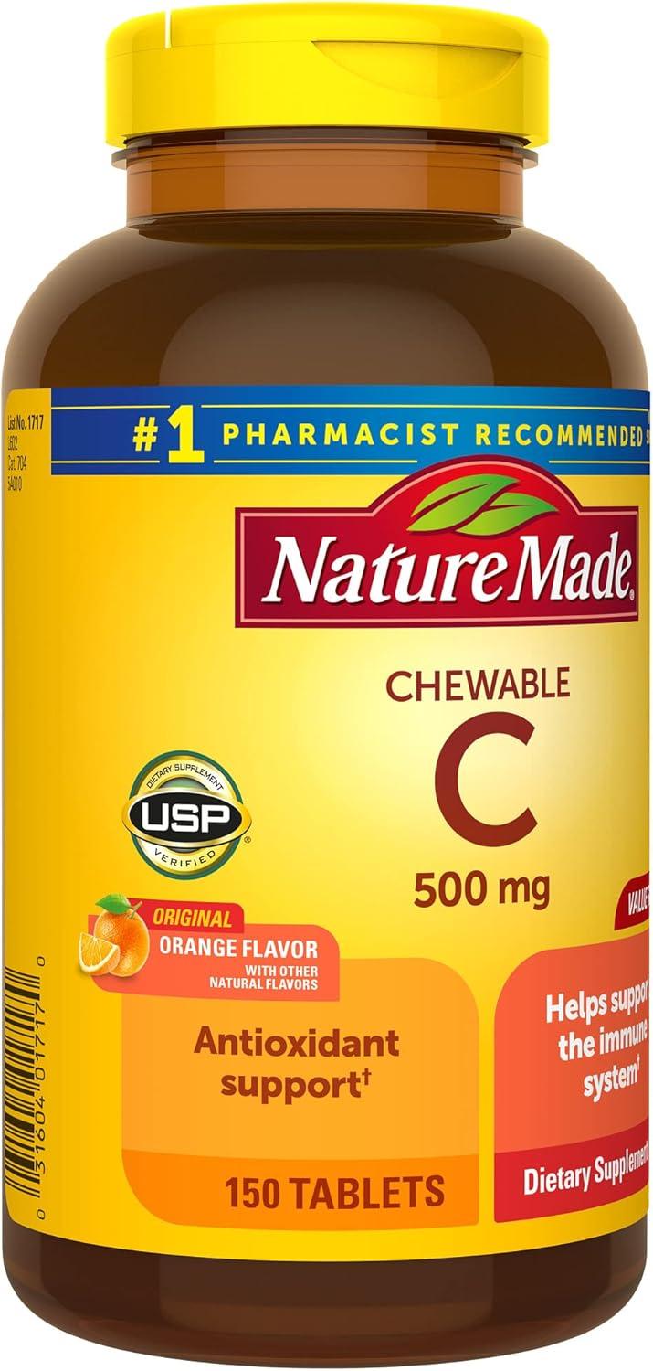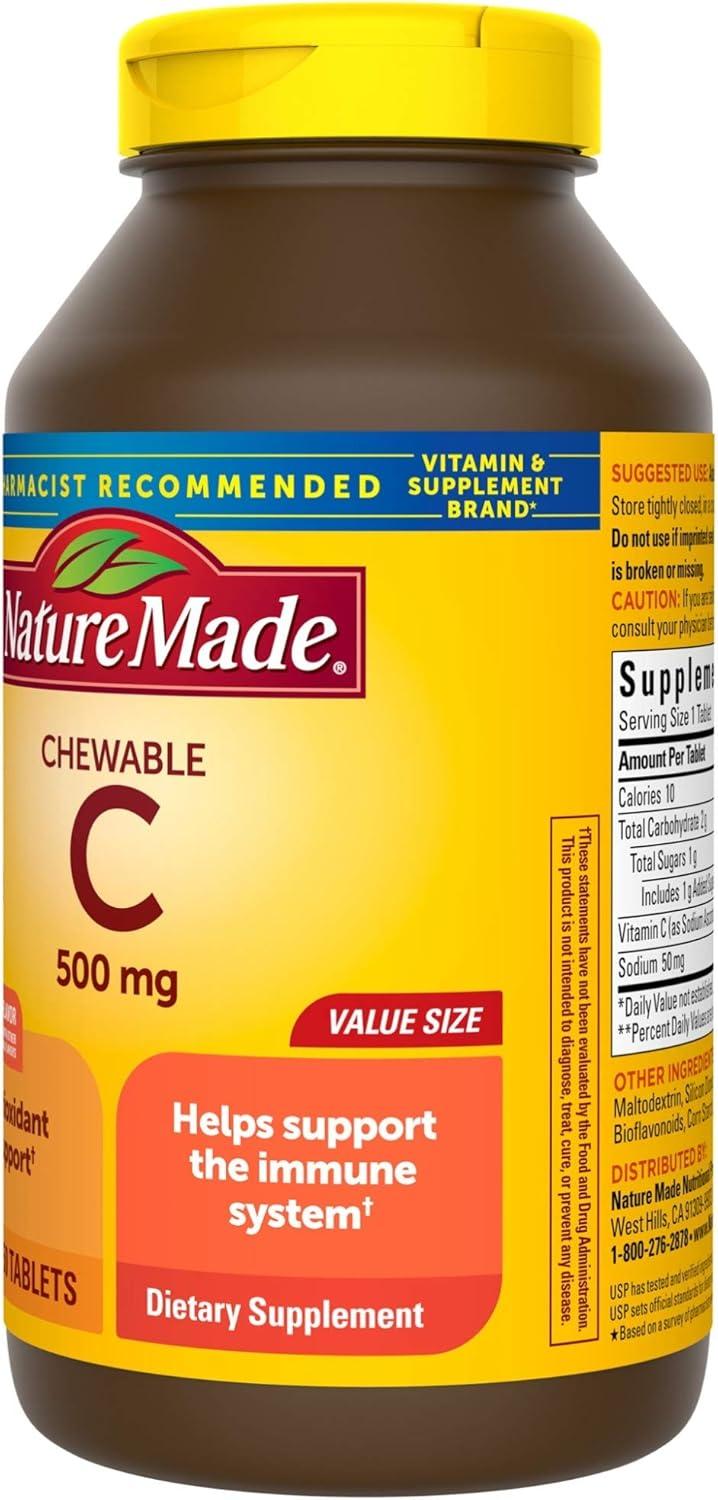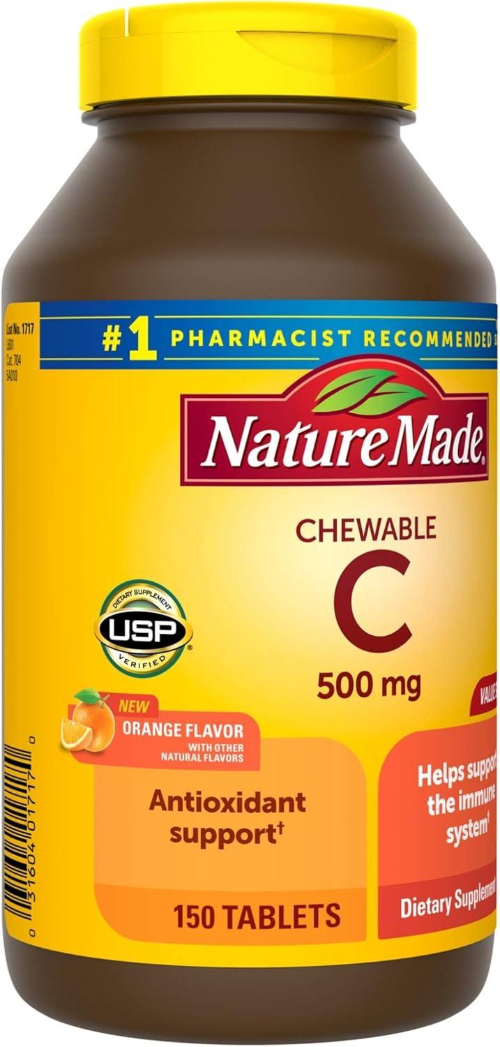 Nature Made Vitamin C 500mg with Rose Hips, Dietary Vitamin C Supplement for Immune Support, 130 Caplets, 130-Day Supply(Orange)