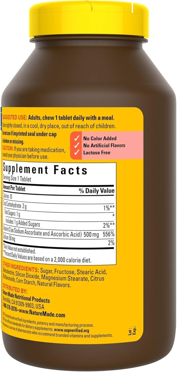 These Vitamin C Nature Made caplets are a dietary supplement that provides Vitamin C to support immune health, provide antioxidant support, and aid in iron absorption. Sourced from high-quality ingredients, these gluten-free 500 mg Vitamin C caplets are an antioxidant supplement with no color added, no artificial flavors, and no preservatives. Vitamin C is not only an antioxidant that helps support your immune system, but it is also needed for collagen synthesis to support overall skin health. If you are not receiving enough Vitamin C from your daily diet or taking a Vitamin C supplement, then this Nature Made Vitamin C 500 mg with Rose Hips option can help. This daily dietary supplement is made for adults to take by mouth with water at home or on the go and fits perfectly into any supplement user’s routine. Nature Made Vitamin C with Rose Hips supplements are quality you can trust. USP has tested and verified ingredients, potency, and manufacturing process. USP sets official standards for dietary supplements. Visit the USP verified website for more information. *Based on a survey of pharmacists who recommend branded vitamins and supplements.