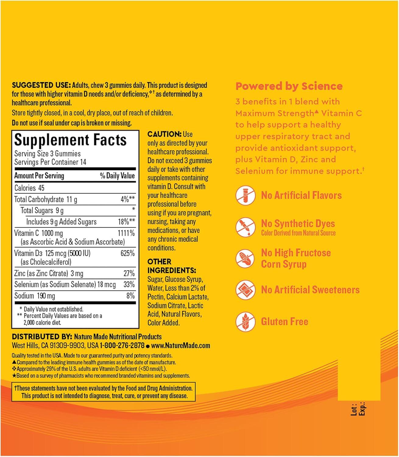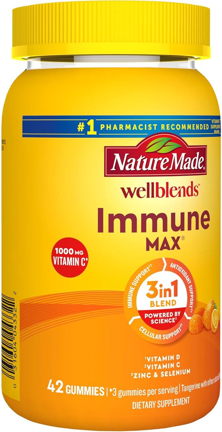 Nature Made Wellblends ImmuneMAX Gummies, Vitamin C 1000mg + Zinc, Selenium, & Vitamin D3 5000 IU, Immune Support Supplement, 42 Gummies